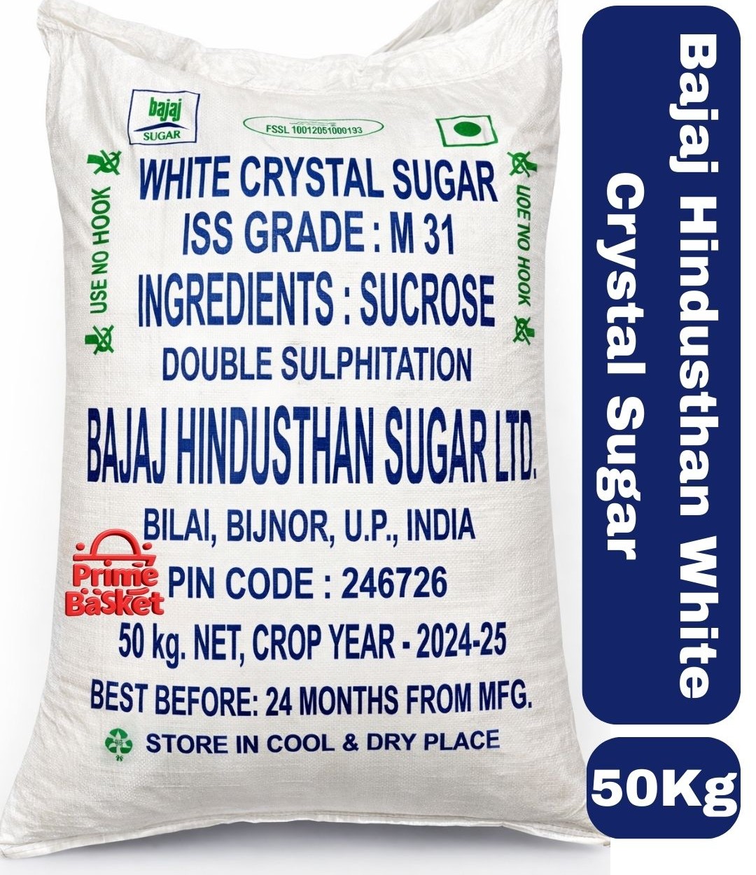 Bajaj Hindusthan White Crystal Sugar 50 Kg
