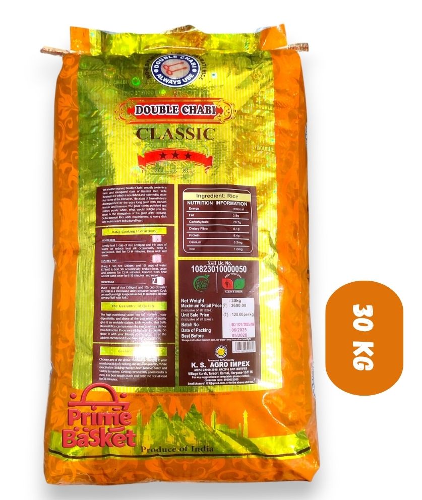 - Double Chabi Classic Basmati Rice is a premium variety of rice known for its distinctive golden color and long grains.