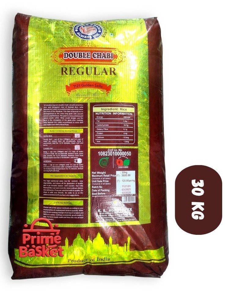 - Double Chabi Regular 1121 Golden Basmati Rice is a premium variety of rice known for its distinctive golden color and long grains.
