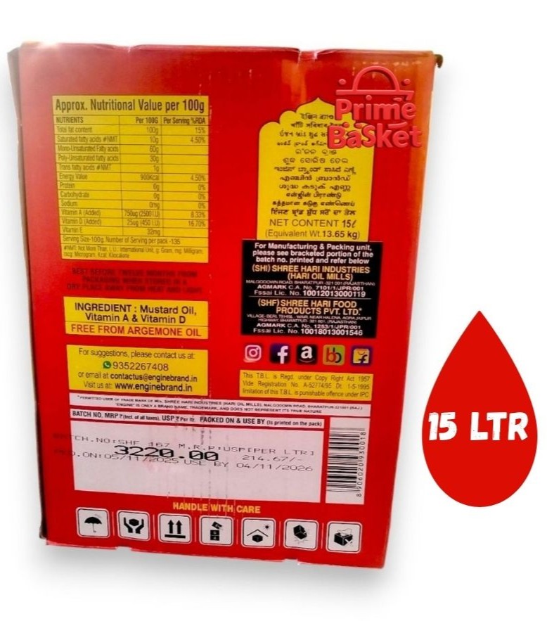 Engine Kacchi Ghani Mustard Oil/Sarso Tel 15 Ltr Tin