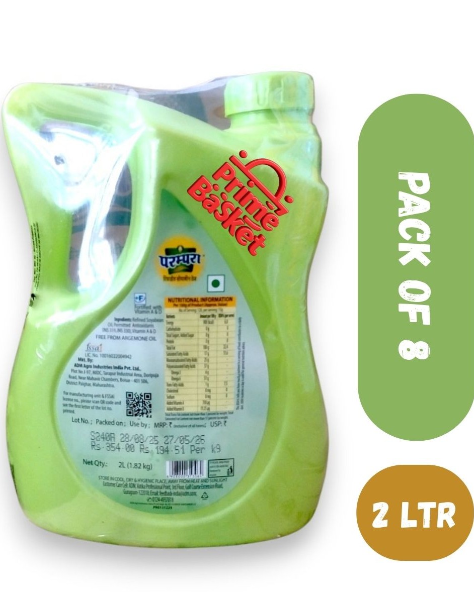 Parampara Soya Refined Oil 2 Ltr Jar (Pack Of 8)