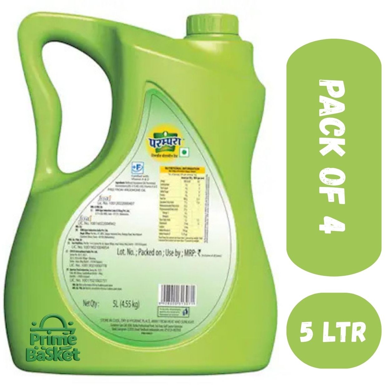 Parampara Soya Refined Oil 5 Ltr Can (Pack Of 4)