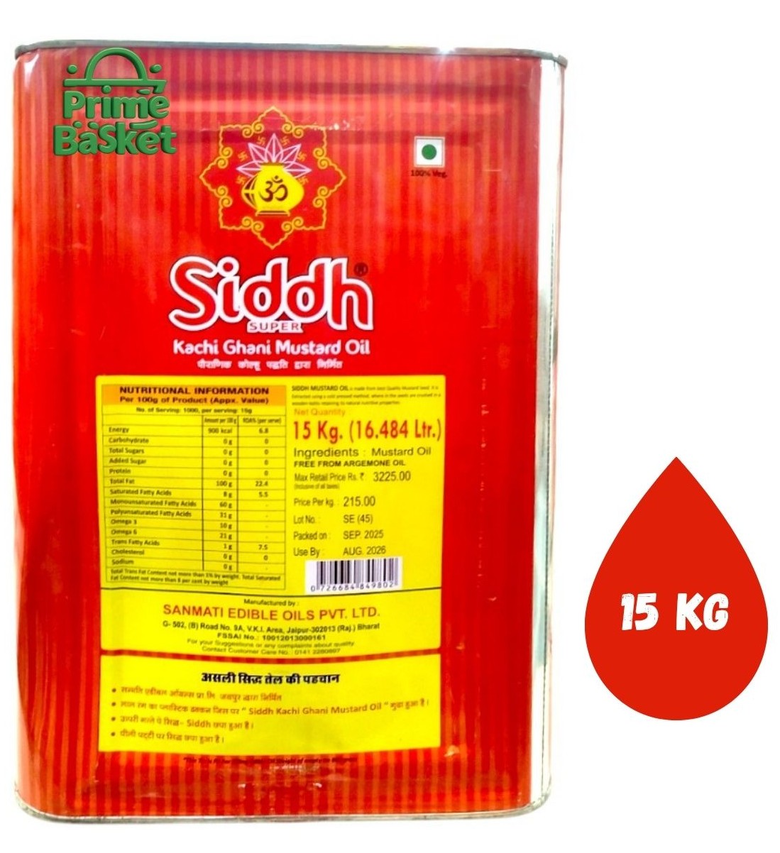 Siddh Kacchi Ghani Mustard Oil 15 Kg Tin