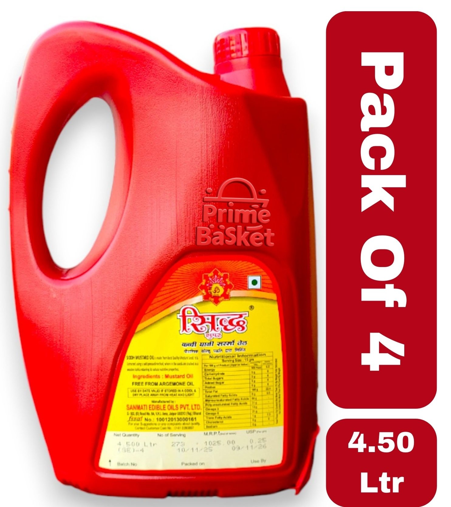 Siddh Kacchi Ghani Mustard Oil/Sarso Tel 4.5 Ltr Jar (Pack Of 4)